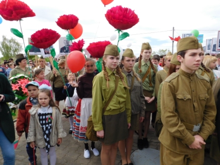 Делегация СПК «МАЯК-Заполье» прошла к мемориальному комплексу “Звезда”, неся в руках портреты героев войны, своих родственников как свидетельство памяти о войне и всенародной благодарности поколению победителей.